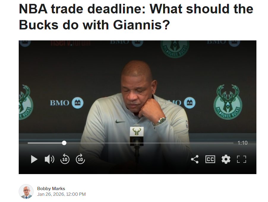 消息来自于美媒《The Stein Line》名记Jake Fischer对于字母哥潜在价值的长文分析。